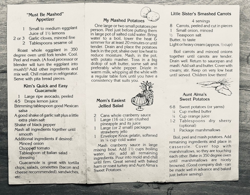 Sidebar: When MMPMs were being sold they came with a trifold of recipes to highlight various recipes where one might use the utensil. Several readers have requested those recipes, so I took a few snaps with my phone. By far the most requested recipe is for the Sunday Morning Cottage Cheese Pancakes.