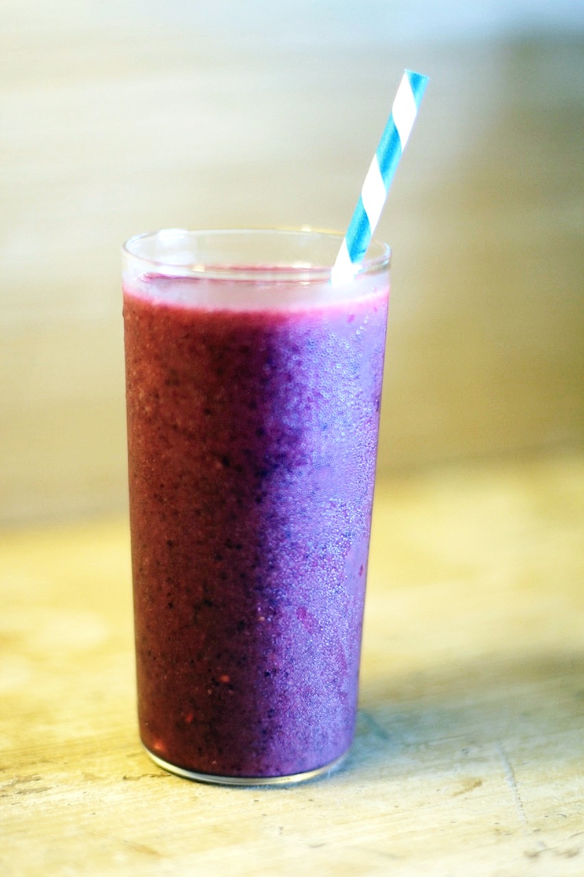 For the magazine article I came up with “recipes” but really it goes like this: a handful or two of frozen sliced bananas, fruit juice, some berries or soft fruit to jazz it up. That’s it. You can play around with combinations but it is hard to go wrong. No ice. No sorbet. No ice cream or frozen yogurt. As Jamie Oliver says, “Easy Peasy”.
