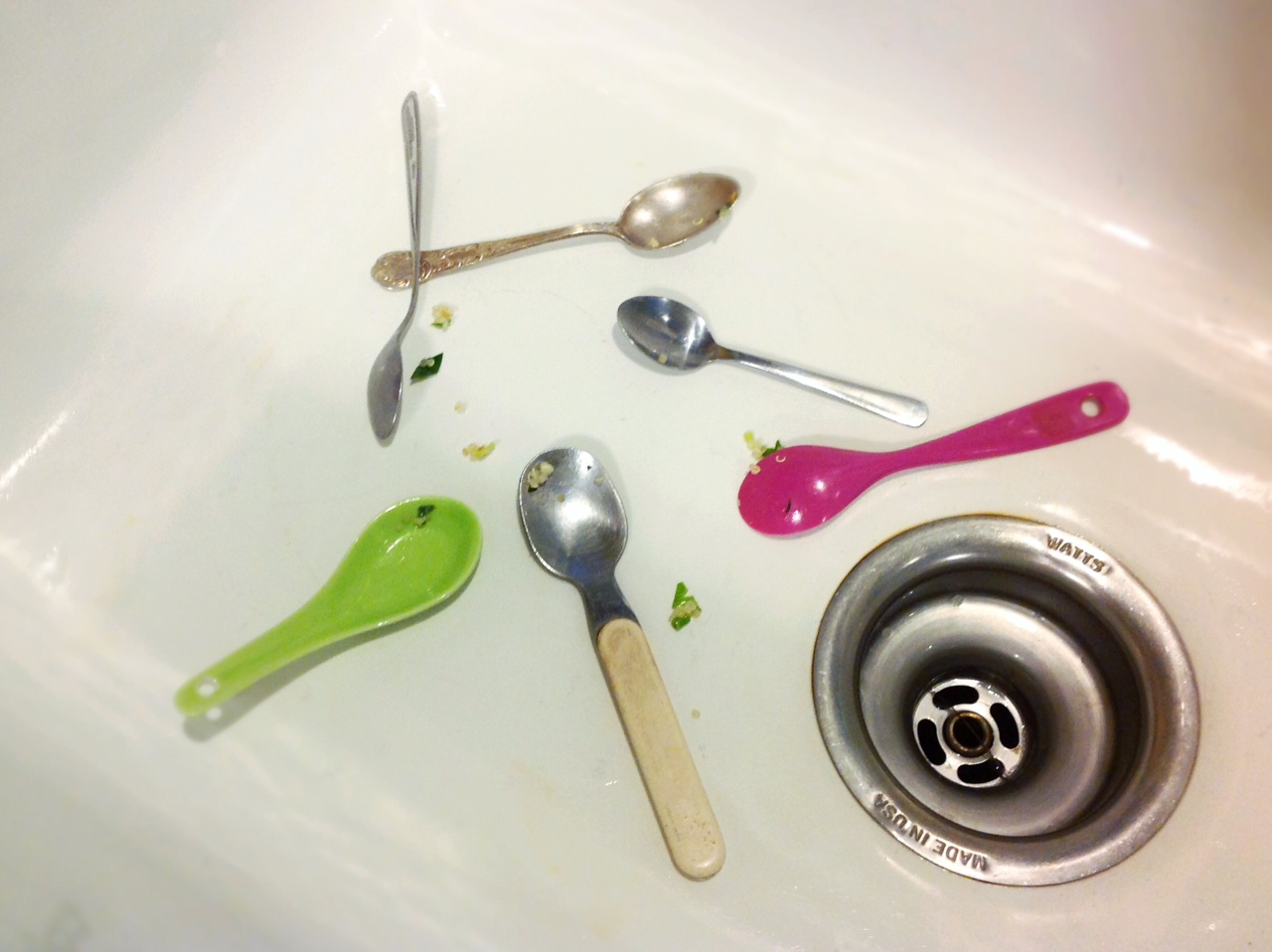 What I loved about the Gram’s tasting spoons was you could always tell how close the pot of food on the stove was to being done when you looked into her white enameled sink. The more tasting spoons there were scattered across the sink, the more likely the food would soon be heading to the table. Below is how many spoons it took to adjust the seasonings in the quinoa tabouli I made the other night.