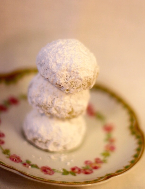 This recipe is from the inimitable Nancy Baggott‘s book The International Cookie Cookbook. Nancy suggests using pecans, but I’ve used walnuts when I didn’t have pecans on hand and the cookies are just as delicious. I’ve also come across variations which used almonds and were called Russian Tea Cakes. I will put out a warning that these cookies are so buttery they almost crumble in your hand, plus the powdered sugar gets all over everything. Unless you’re wearing black you won’t care about the powdered sugar as you reach for another.