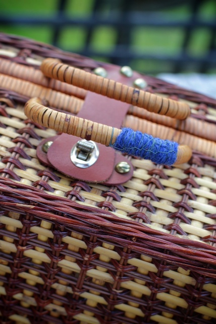 I have a small metal briefcase style picnic basket just big enough to hold a pair of plates, cutlery, glasses, napkins, and cups – the food clearly has to come in it’s own basket.