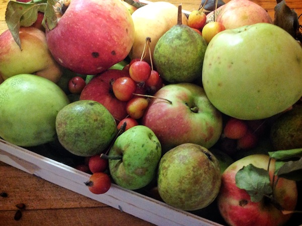 *What do you do if you don’t have friends with apple trees? My first suggestion is, if you live in apple growing country, to buy several different varieties of apples to use. Ask the farmer as they will have great suggestions for which apples are the best cooking apples. If you don’t live in apple growing country, then get a mix at the store – MacIntosh, Granny Smith, Empire, Cortland, Mutsu, maybe throw in a pear to mix things up. What you want to do is layer the flavors of apples. More like four part harmony than a solo.