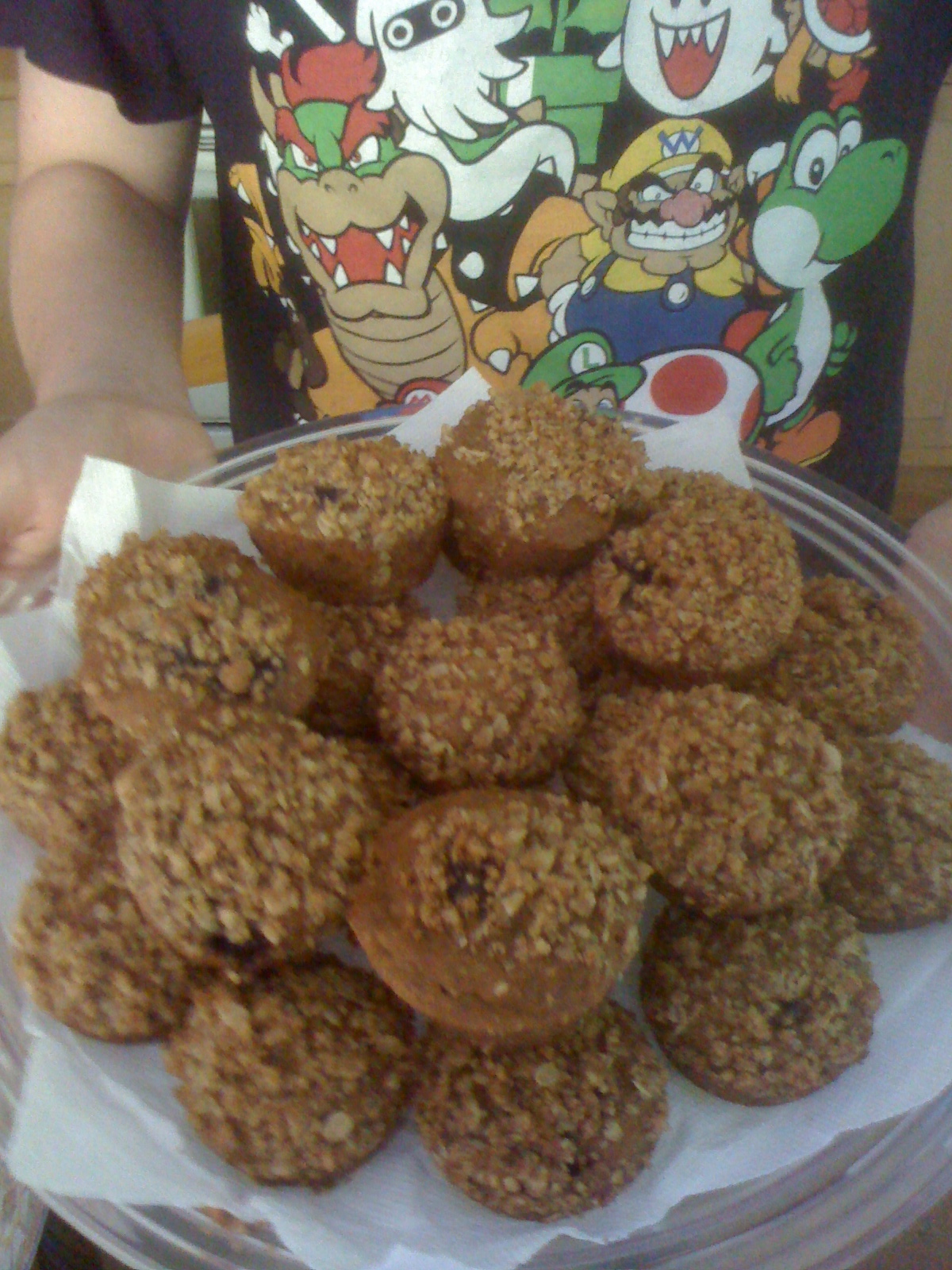 I got up at 6am yesterday to make muffins for the kid’s last day of camp. It was 80ºF before I even turned the oven on to preheat so you might ask if I was suffering from heat stroke (I wasn’t) or if I’d simply lost my mind (not that I know of). What would have inspired me to make muffins in the middle of an excruciating heat wave in an un-air conditioned house? Because my kids had asked me to.