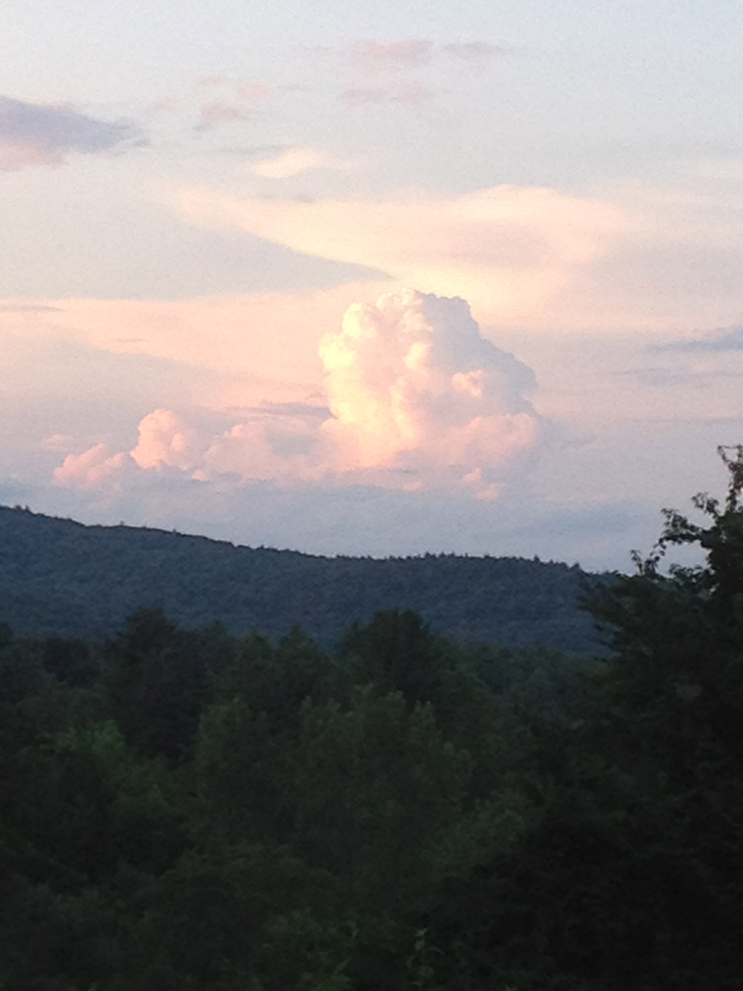 I have to say it’s been a delightful summer so far. Beautiful days with blue, blue skies full of enormous cumulus clouds, and nights cool enough to need a light blanket. It’s almost as if I’m in Maine not Massachusetts, and I like it very much. Of course Mother Nature has had a few bitchin’ days here and there. It’s as if she morphs into a menopausal menace who forces everyone to live through her horrendous hot flashes made up of 98º F which she then combines with 98% humidity; because you know if Mamma suffers, than everyone has got to suffer. Fortunately those nasty days have been fairly limited, and for the most part I get to start each morning listening to the birds sing and the bumblebees buzz in my hostas. A few days ago I was treated to a viewing of the proverbial birds and bees when I watched a pair of hummingbirds fly from my nasturtiums to my morning glories and then on to the hostas, fighting as they went of course since that is what hummingbirds do, while dozens of bumbles sedately moved from one hosta stem to the next, occasionally stopping by the other flowers to test their tastiness. It was actually thrilling to see both birds and bees seeking nectar and pollen from the same plants.
